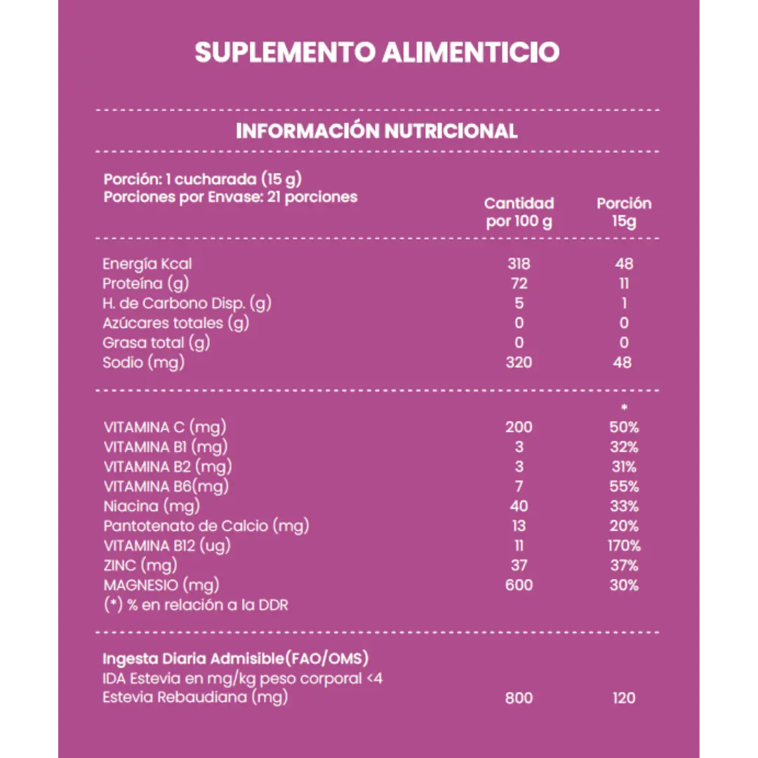 - Destacados: Vitamina C, B1–B12, Zinc, Magnesio (tabla DDR en ficha).